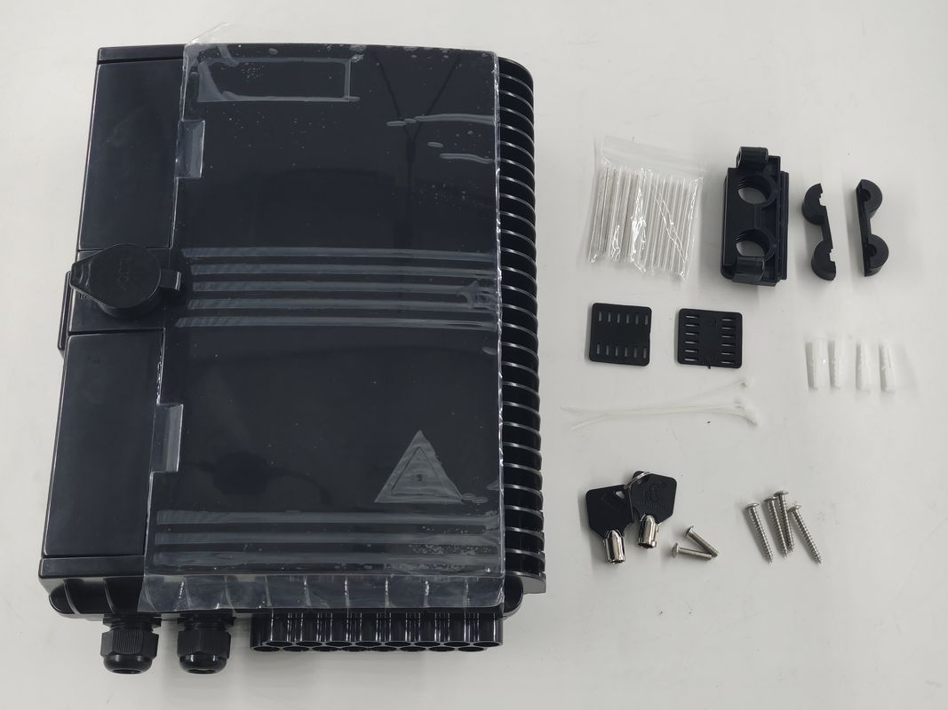 splitsen, terminal en distributie. De input is voor gewone optische kabel, en output voor voorgemonteerde single core FTTH drop kabel.